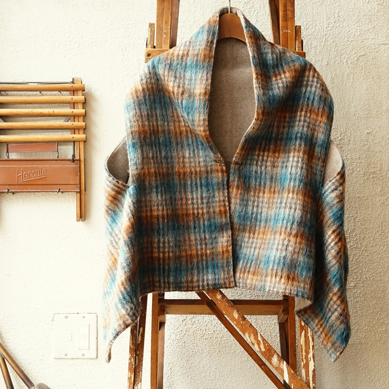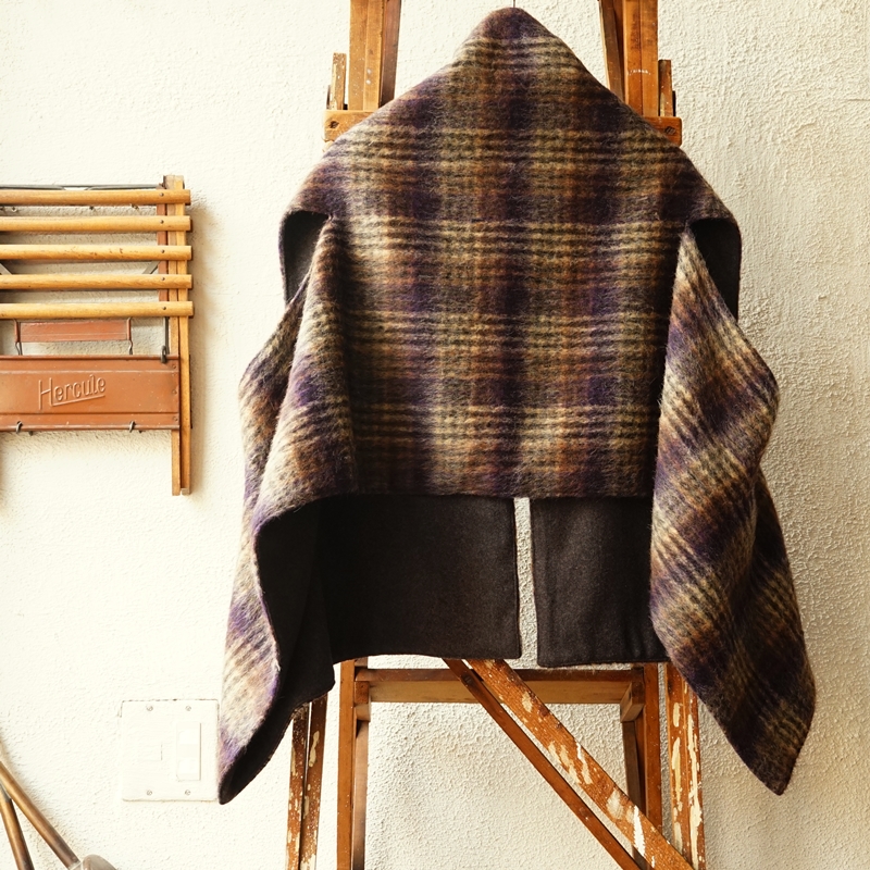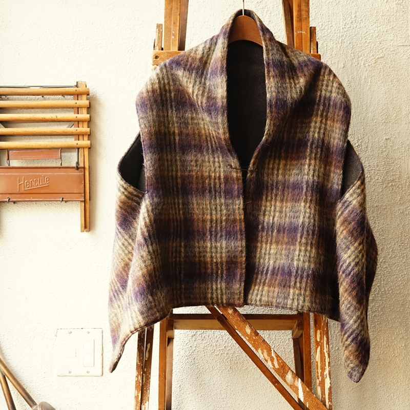 chaggy check shawl vest / 252-075