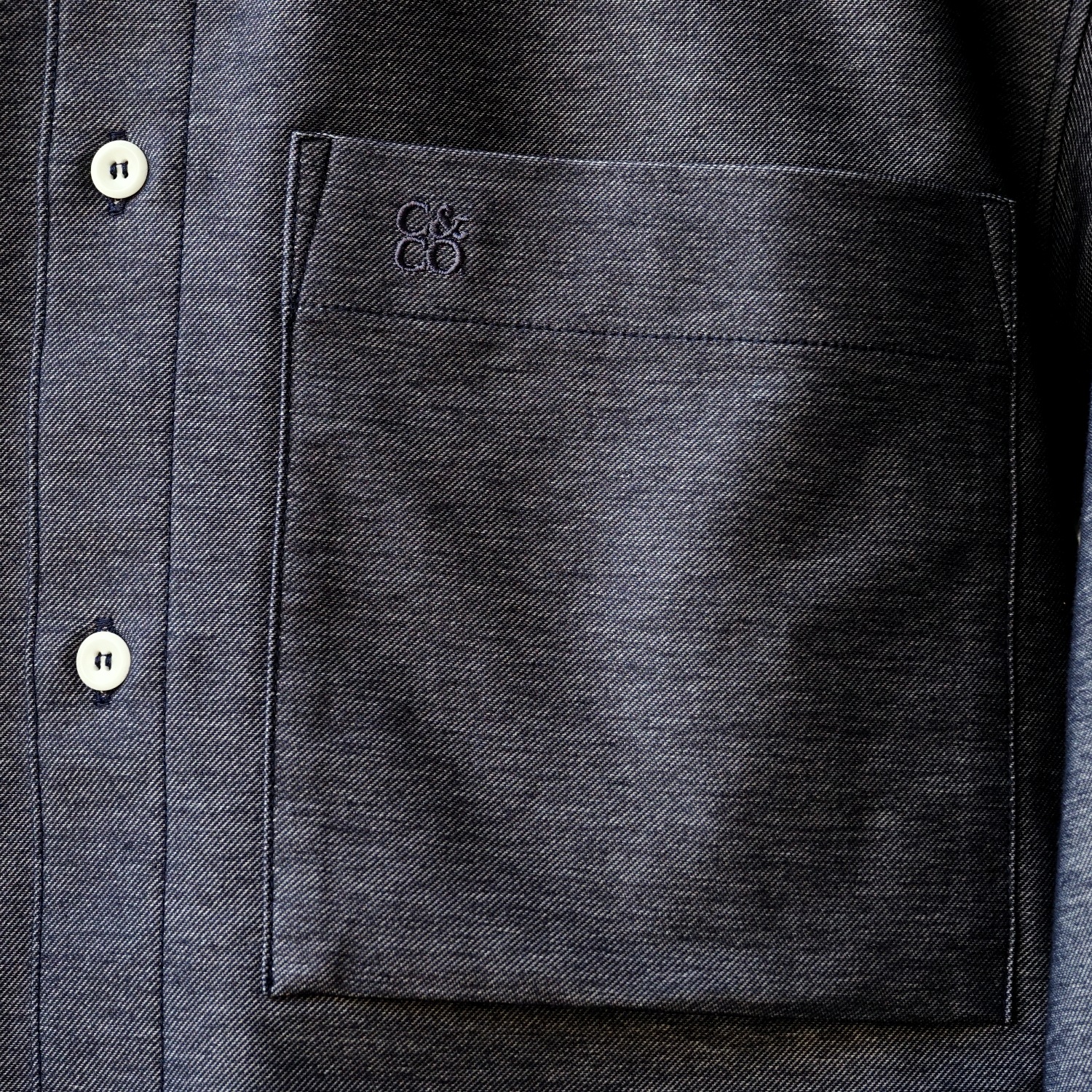 さり気ないポケットの刺繍使いをポイントに