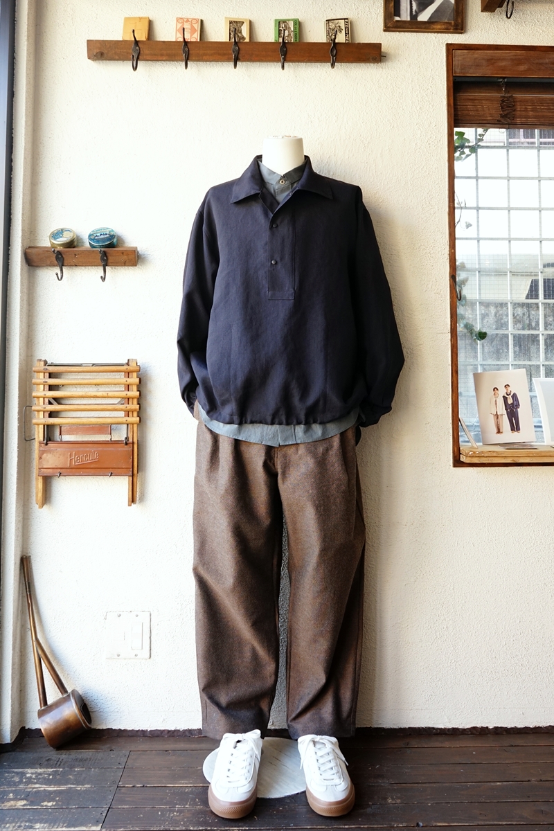Mixed colour 1 pleat pants を合わせて