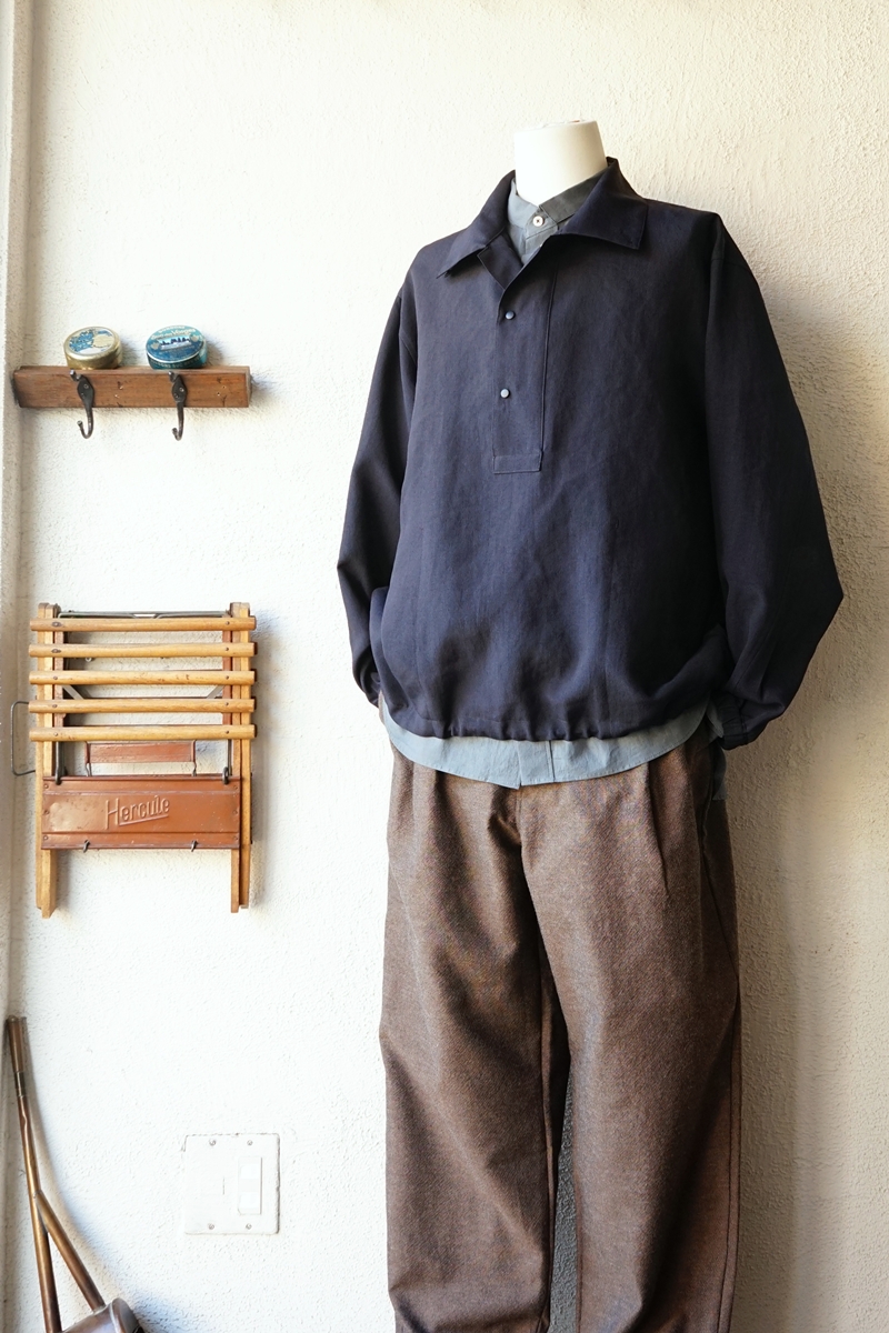 STILL BY HAND Linen mixed narrow collar shirt ¥22,000